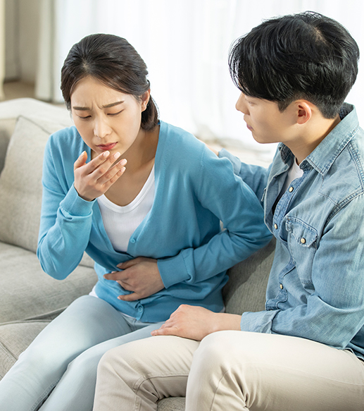 급성이나 만성의 경우에 속이 메스껍고 구토증상이 일어난다.